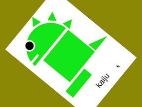 怪獣の絵をくるっと回すiPhoneアプリのサンプルコードを描いています。