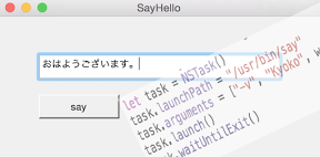 sayコマンドでハローするMacアプリ(Swift)のサンプルコードを描いてみます。